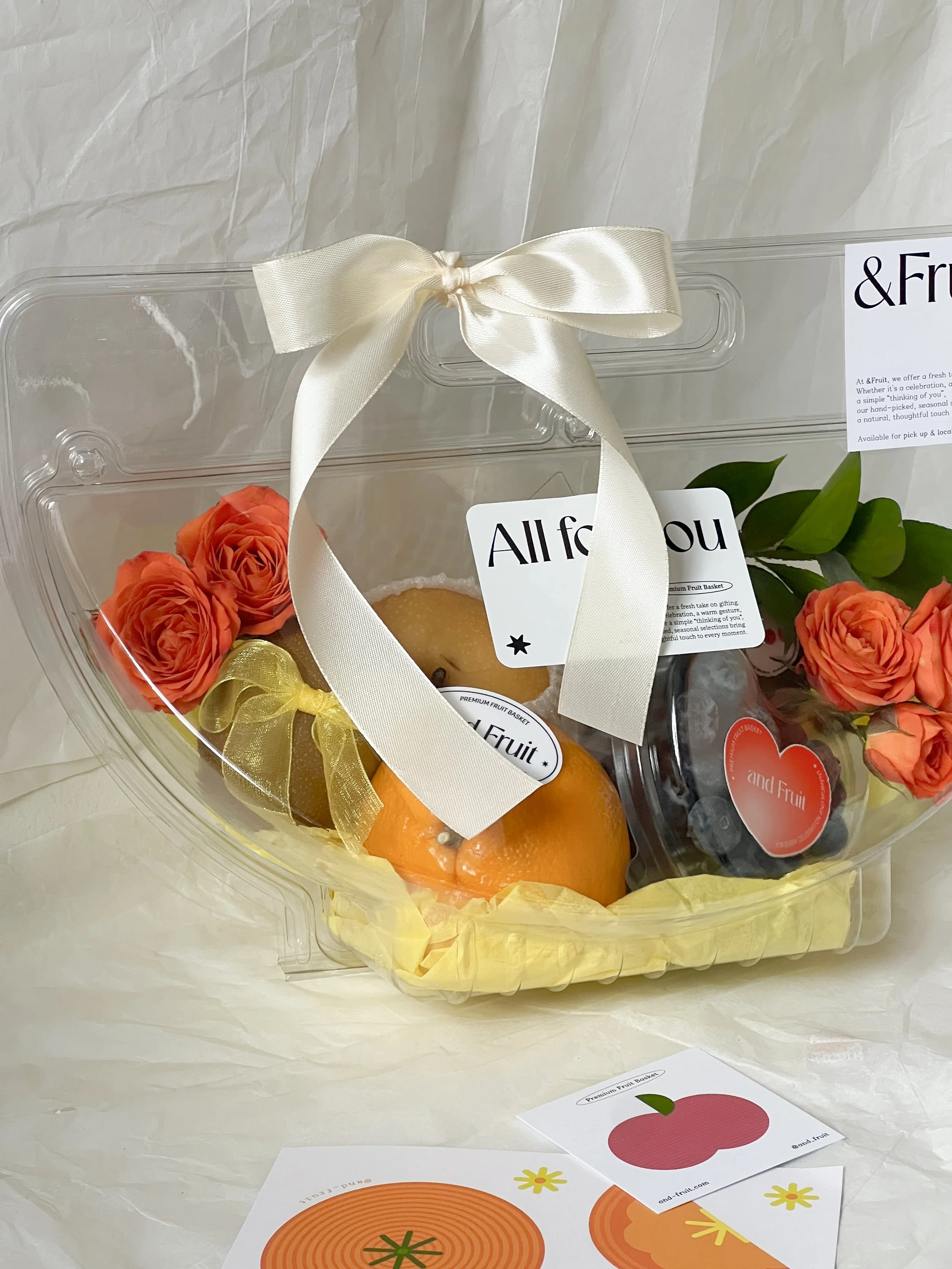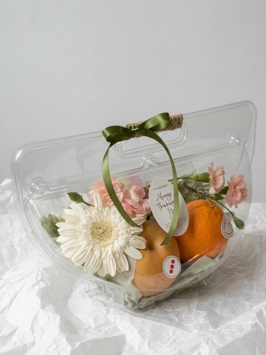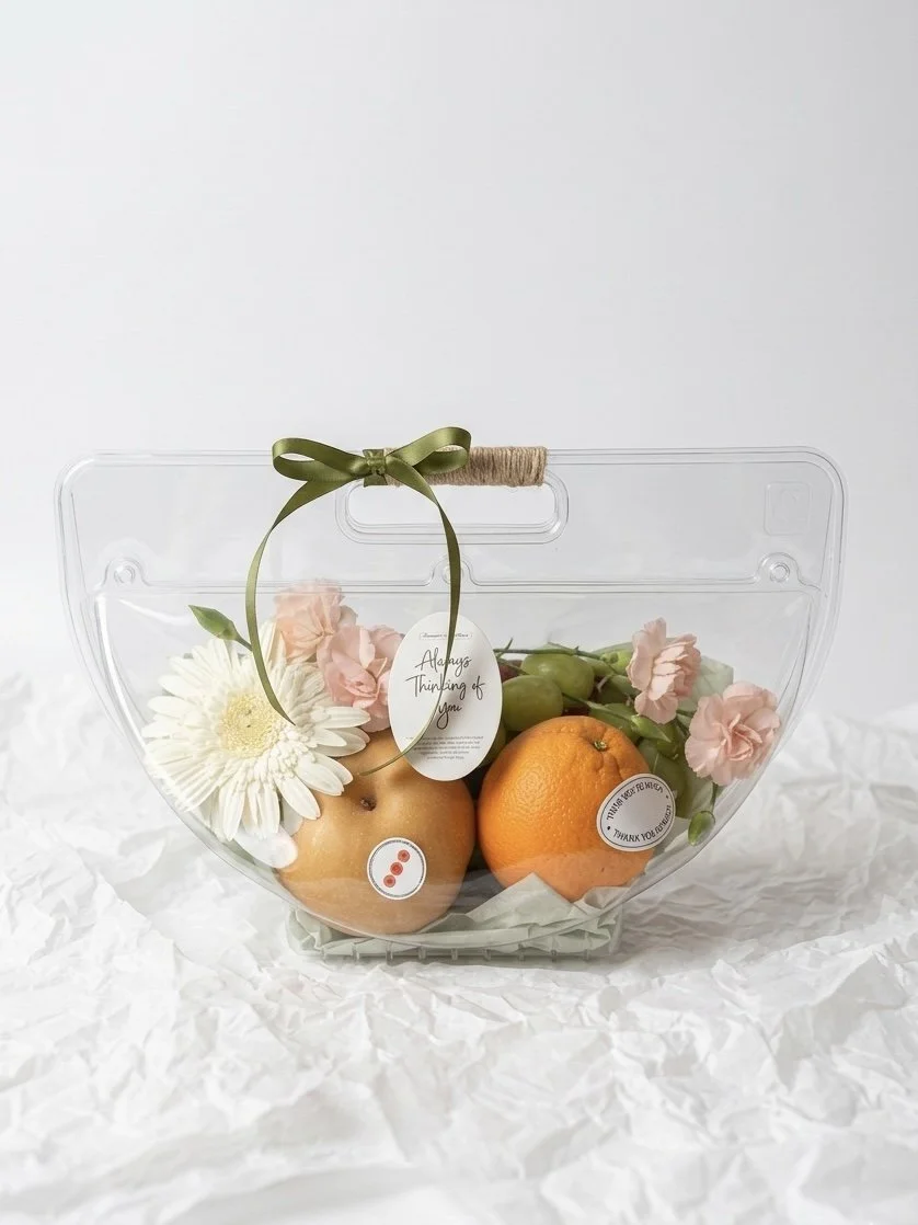 This compact fruit bag holds 5–6 seasonal fruits, thoughtfully selected and beautifully arranged.